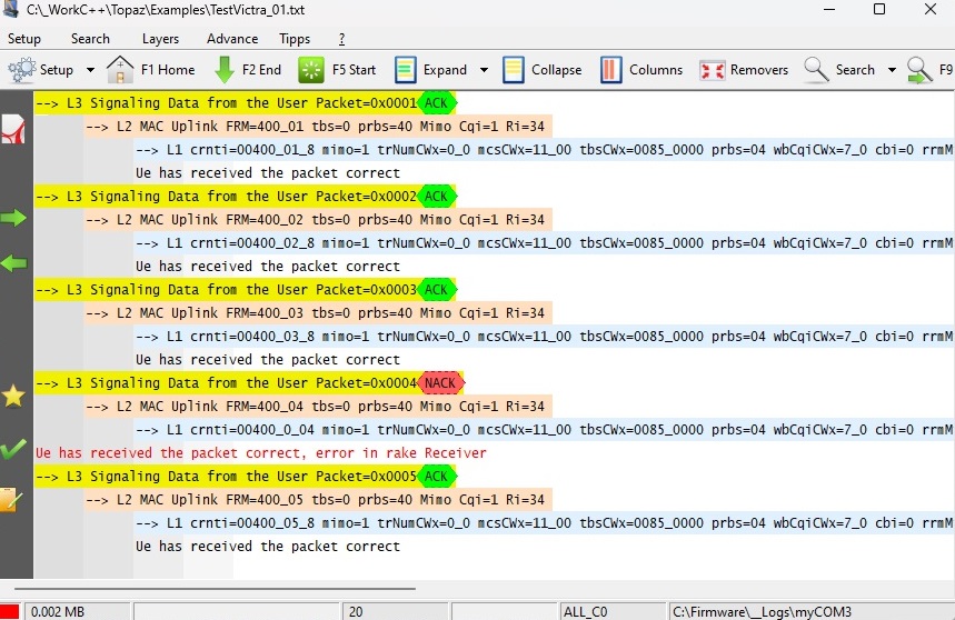 Users can define up to 20 keywords. Every incoming string is checked in real time for these keywords. If a match is found, it is assigned, and recording continues. Errors can be detected and highlighted (for example, in red). Strings matching keywords are displayed in the layer and colour specified in the settings.